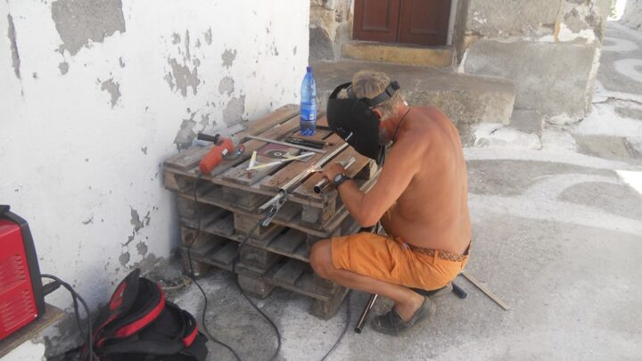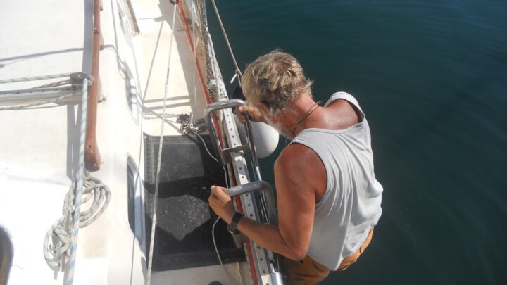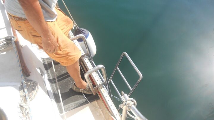 Svein has worked very hard whilst we have stayed in Nisyros and has made our bathing ladder to be used on the side of the boat.