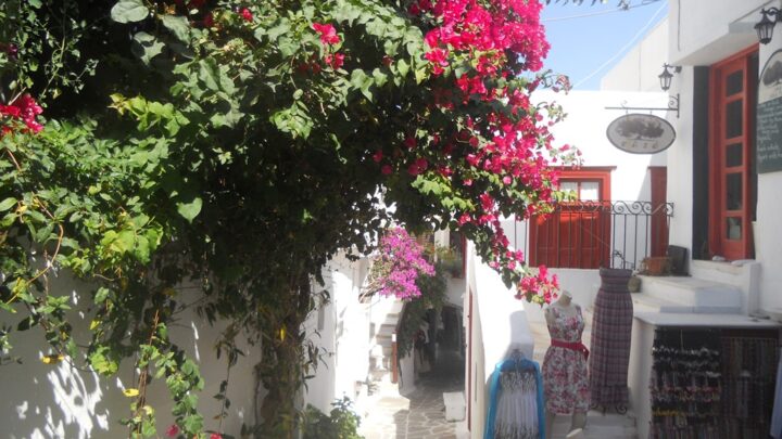 The next morning we set off early with the intention of reaching Naxos. We wanted to check out the harbour as we have some very good Swedish friends who wintered there last year and will do so again this year. We had wind all the way and motor sailed for the most part. , Anti Paris and Paros. Before rounding the south part of Paros we brought in the sails as we were heading straight into head winds that increased as we got nearer Naxos marina. It was a very bumpy ride with big swell and winds of up to 36 knots on the nose. With the water washing over the front of the boat we discovered that the deck hatch of the front cabin is not watertight!!!. We shall have to dry out the mattress that took a great deal of water. We arrived at the marina to find it was really full but after some catamarans left we managed to find a spot on the outside wall. A fairly hazardous place as it receives the full backlash of the numerous ferries that dock all day and night on the island.