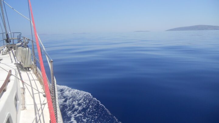 The next morning, after Svein had treated the hull with oxylic acid to remove the rust stains we hoisted the anchor and set out for the island of Levithia. Our last visit there had been in 1994 on our first charter trip to Greece.