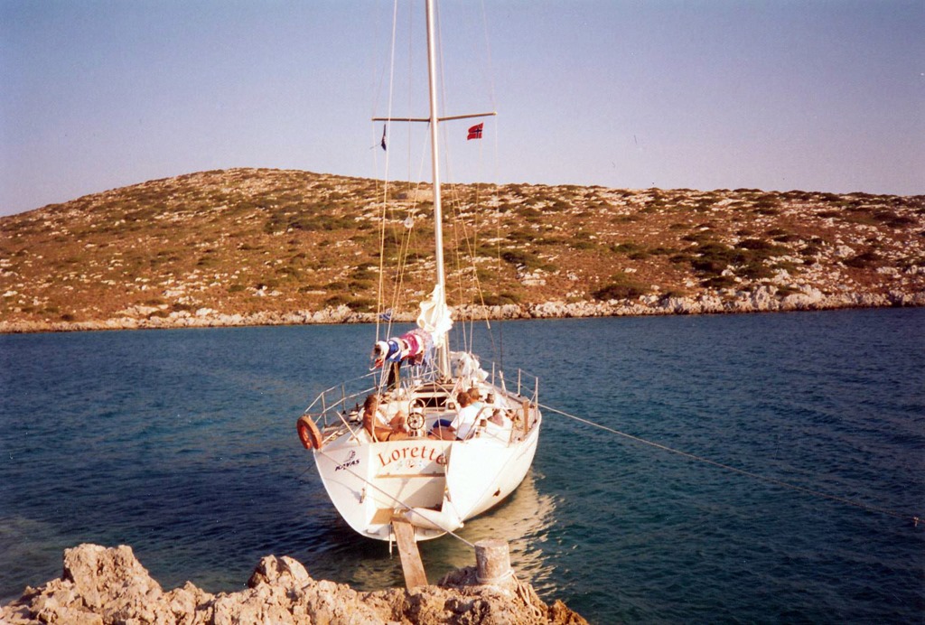 The next morning, after Svein had treated the hull with oxylic acid to remove the rust stains we hoisted the anchor and set out for the island of Levithia. Our last visit there had been in 1994 on our first charter trip to Greece.