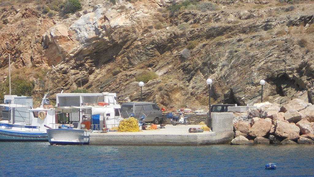 After a week in Milos we left the town quay and motored out of the long bay. We started heading East and our goal was to reach the island of Sifnos. It is many years since we had last been here. It was a question of motor sailing all the way. We sailed round Kimolos arrived in the early afternoon and after trying a first anchorage Ormos Faros (where the holding was bad) we eventually anchored in a big bay (Limeniskos Platy’s Gialos). We spent a peaceful night at anchor.