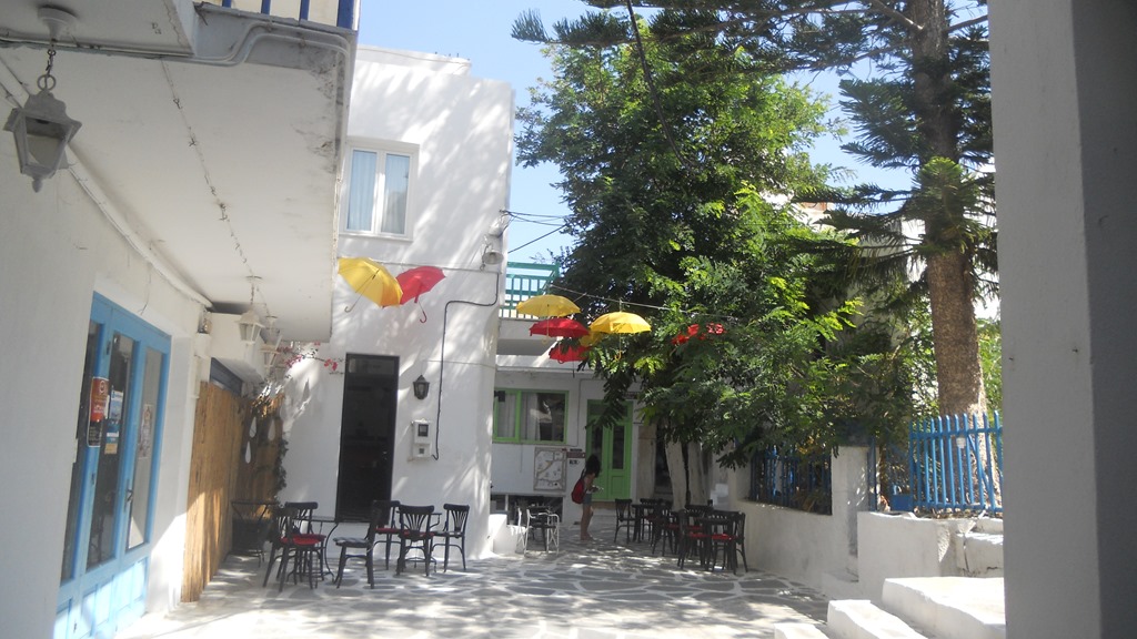 The next morning we set off early with the intention of reaching Naxos. We wanted to check out the harbour as we have some very good Swedish friends who wintered there last year and will do so again this year. We had wind all the way and motor sailed for the most part. , Anti Paris and Paros. Before rounding the south part of Paros we brought in the sails as we were heading straight into head winds that increased as we got nearer Naxos marina. It was a very bumpy ride with big swell and winds of up to 36 knots on the nose. With the water washing over the front of the boat we discovered that the deck hatch of the front cabin is not watertight!!!. We shall have to dry out the mattress that took a great deal of water. We arrived at the marina to find it was really full but after some catamarans left we managed to find a spot on the outside wall. A fairly hazardous place as it receives the full backlash of the numerous ferries that dock all day and night on the island.