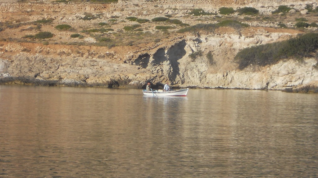 We ate ashore in the local tavern and enjoyed the warm crystal clear water. A fabulous safe anchorage that we would certainly use again. We were entertained by the local fishermen who rowed round the bay either letting our or taking in nets.