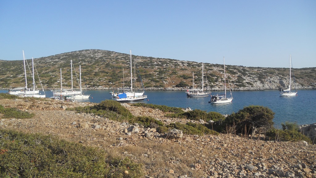 Another day and a south westerly was forecast so it was the perfect wind to take us up to the northern tip of Leros to the bay of Pantheni. It was a bumpy motorsail with plenty of swell but after a failed attempt to anchor we hooked a buoy from the shipyard and sat out the blow.