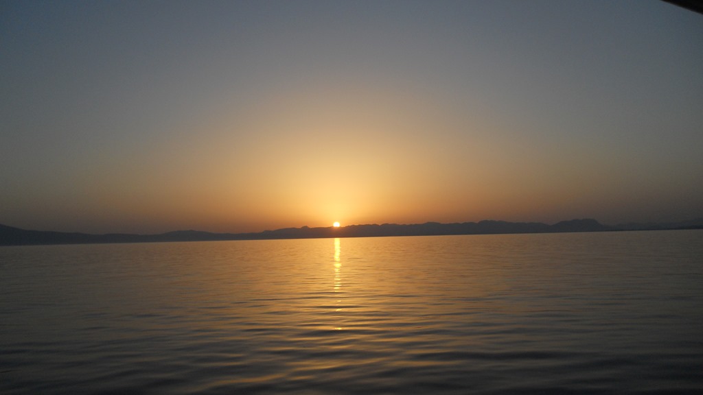 With everything put away we were ready to leave and decided to take a gentle trip to the other side of the bay to test things out. We motored across to have lunch with Annette and Jean Marie. We anchored off the beach and went ashore where we were treated to produce fresh from their garden. After lunch we relaxed and took a well earned swim. We left them so that they could watch the football whilst we went back to the boat and enjoyed the sunset.