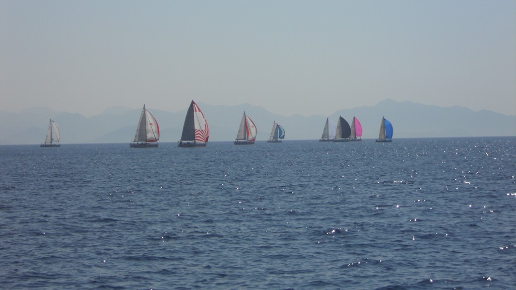 It was again time to move on so we weighed the anchor and left the bay to head for Rhodes. it was also the final leg of the Rhodes Regatta which we “joined” from the time we left the bay right up to their arrival in Rhodes.