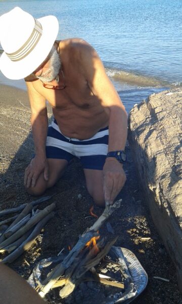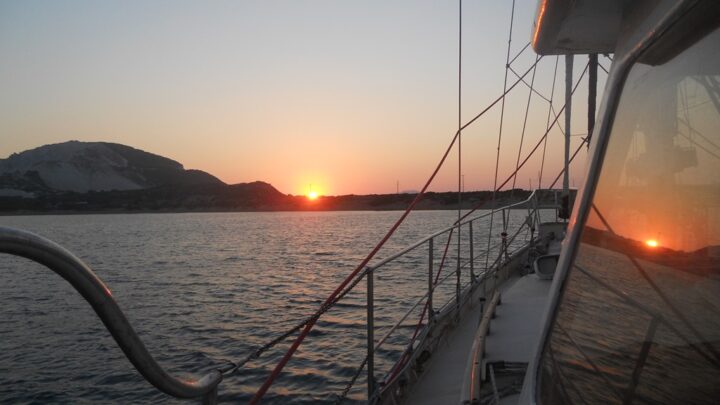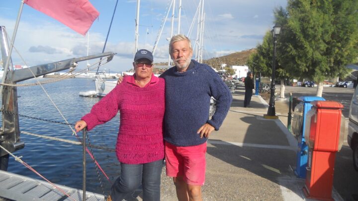 Firstly we made our way back to Kardamena to solve the fridge problem and ended up putting back the old compressor with new gas and new valve. This however took quite some time as parts had to be ordered from Athens and took the slow route to reach us. Eventually everything was reinstalled but whilst we waited we were at the beach every day and Caryn managed to get a Thai massage there every day and in the evening worked on the new sweater for Svein (knitted in Alpaca and coming from a friend’s website in Norway).