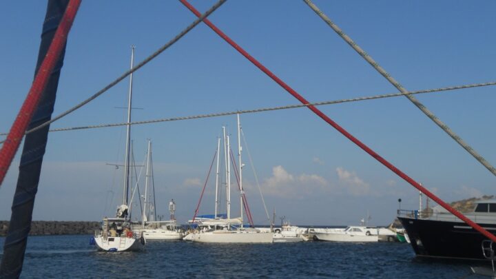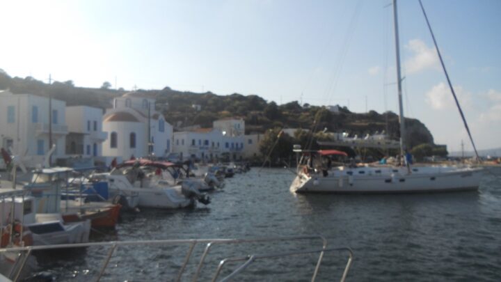 After two days of peace and quiet we made our way to the harbour of Pali (Nisyros) where we were expected. We moored in our usual spot (in front of Aphrodite restaurant). It was lucky that we got in early as very soon it was packed to the gills with boats. Fortunately there is now a harbour master (one of the changes since the new mayor took office on 2nd September) who squeezed everybody in although some of the moorings looked fairly inventive.