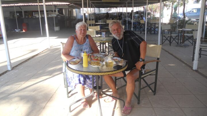 We left Gytheio and motored down to Elafonisos where we anchored in crystal clear water. We had a well earned swim and then went ashore to have a meal at the local taverna.