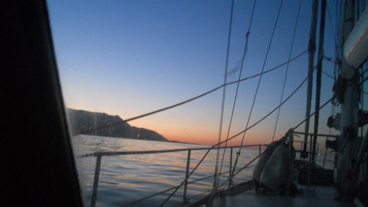 We went to bed early as we had decided to round the 3rd tip of the Peloponnese and head straight to Milos. This was to be a all day trip so we were up very early and headed out at 5am. We saw the sunrise over Agios Maleas.