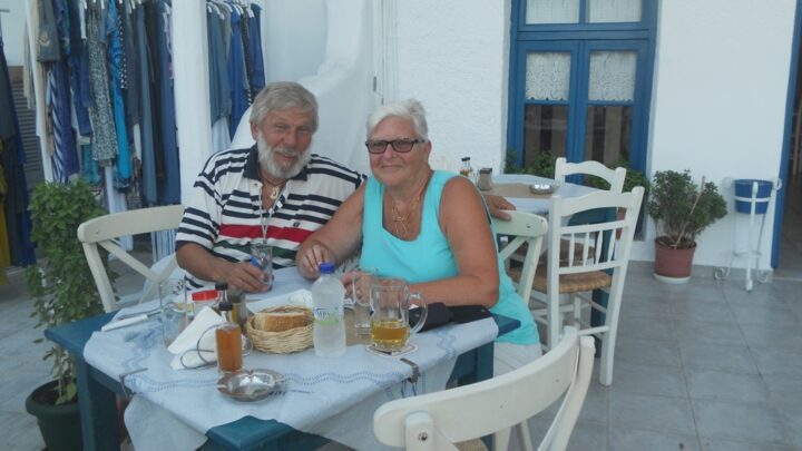 Today we hired a buggy and went exploring the island whilst waiting for the last of the strong winds to drop. We drove to the south of the island and visited two beaches Provatas and Paleochori. We lunched at the first and swam and relaxed at the second. Once back in town Svein continued to explore the capital of the island Plaka before returning the buggy