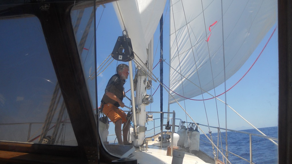 We motor sailed for 13 hours and as the wind was quite fickle Svein was kept busy adjusting the sails and reefing in the main. We even sailed without a genoa at one stage as the wind picked. It was also quite bumpy at times so much so that we felt a bit like a cork bobbing round on the sea.