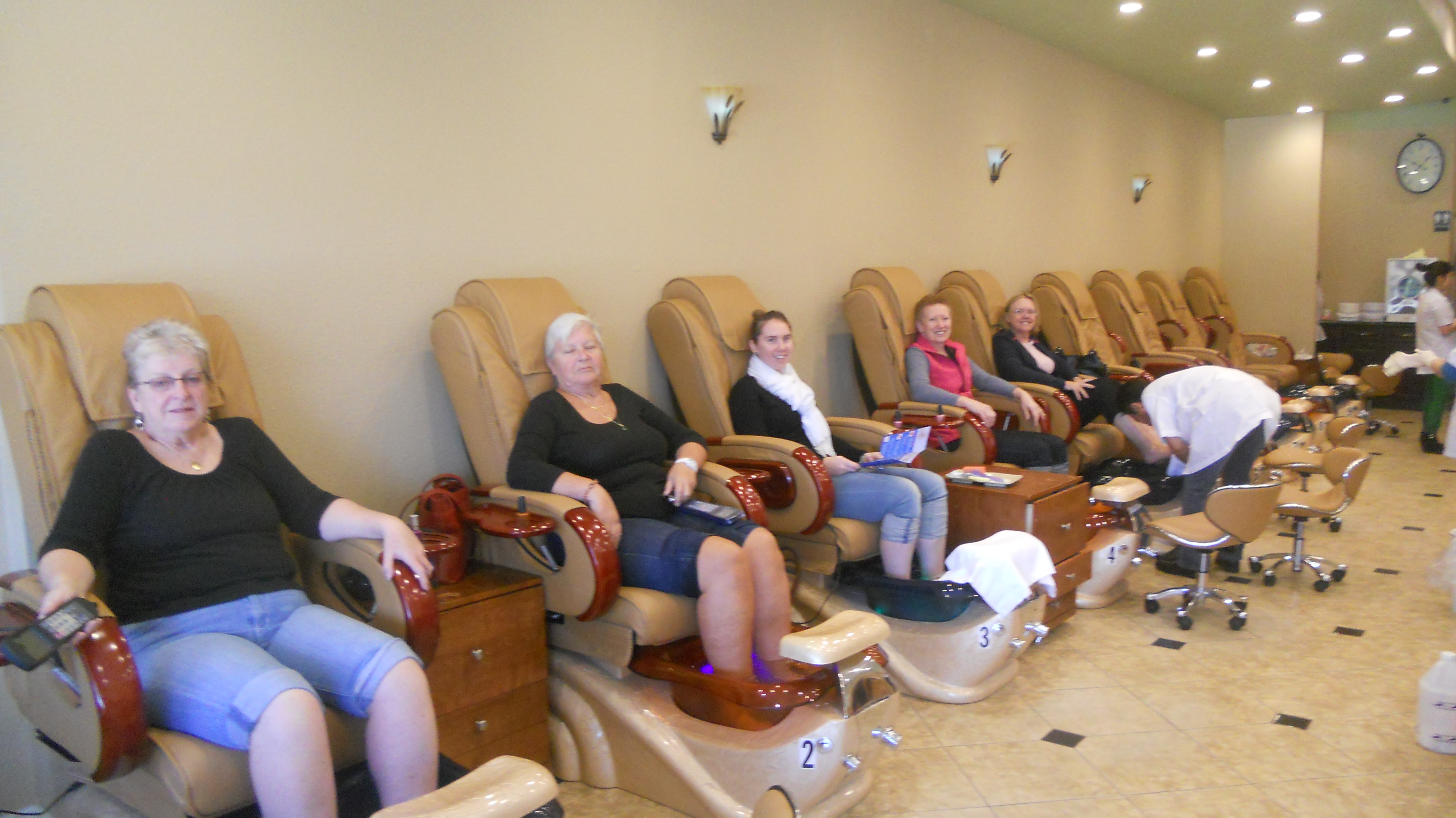 To get us ready for the event we were pampered with manicures, pedicures and the hairdresser who came to the house. The manicure/pedicure treatment was quite something with massage chairs, warm stones and wax treatment. Caryn has had a number of mani/pedicures but never anything like this!!