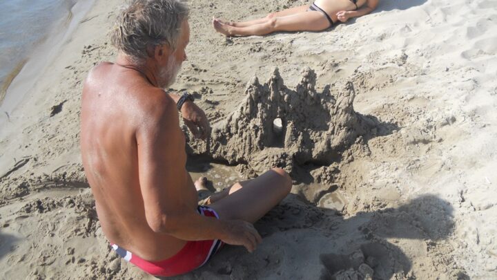 Despite that we were in September it was very quiet and most of the tourists visiting the region come in July and August. However in between visits to the hardware stores and varnishing the doors and frames, cleaning the wooden terrace and making a cupboard in the baby’s bedroom we managed to cycle to a nearby lake where we were able to swim and Svein returned to his childhood by building a castle.